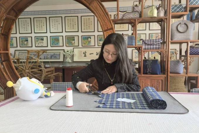 当地手艺人不断探索,将土布与现代审美相结合,开发出各式各样的文创产品和时尚服饰。值得一提的是,廊下土布作品曾多次走出国门,开展文化交流,甚至还通过中国国际进口博览会向世界展示了中国传统手工艺的魅力。在第八届进博会的“上海非遗客厅”内,廊下土布制成的猫萌系列布包和小挂件,因其可爱的造型和独特的文化内涵,吸引众多观众驻足欣赏。